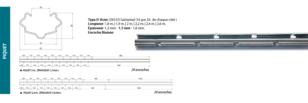 Veuillez nous consulter pour d’autres conceptions. Nous pouvons fabriquer votre piquet ou profilé agricole selon vos besoins.
